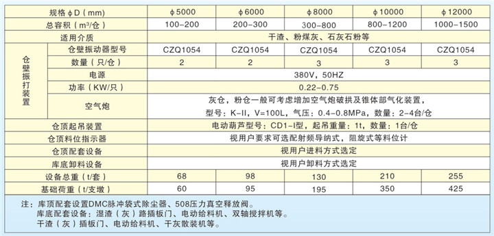钢渣库、粉库技术参数表