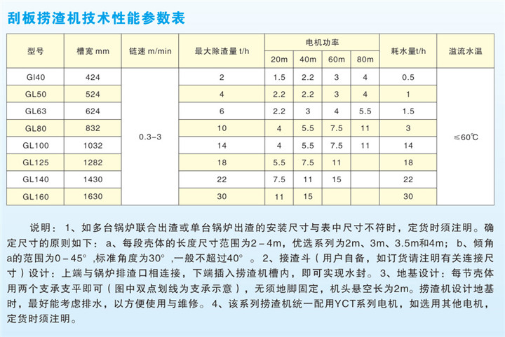 GL型刮板捞渣机适用于各种燃煤锅炉(工业锅炉、电站锅炉与粉煤浆化炉等)的湿式除渣。它不但能出炉渣,而且还能将省煤器细灰、空气预热器细灰、磨煤机排出的废物,烟道灰及炉排下面的细灰连同炉渣一块运出。它可单台炉出渣,也可以多台炉联合除渣,并可出大块焦渣。